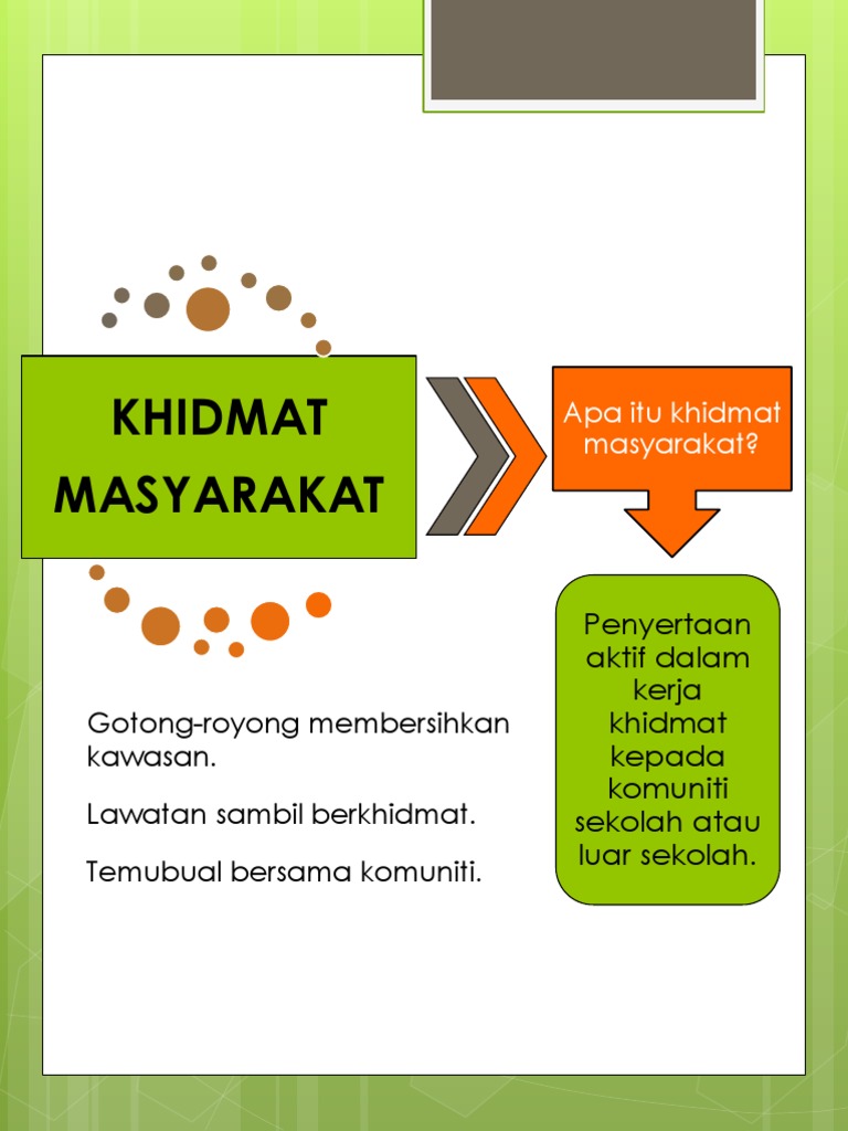 KHIDMAT MASYARAKAT Khidmat Masyarakat ialah kerja amali yang dijalankan di luar jadual waktu persekolahan Menjalankan kerja amali di luar waktu persekolahan sekurang-kurangnya 10 jam Penyertaan aktif dalam kerja khidmat kepada komuniti sekolah atau komuniti luar sekolah MATLAMAT KHIDMAT MASYARAKAT 1. 25 Jun 2021 Jumaat Masa.